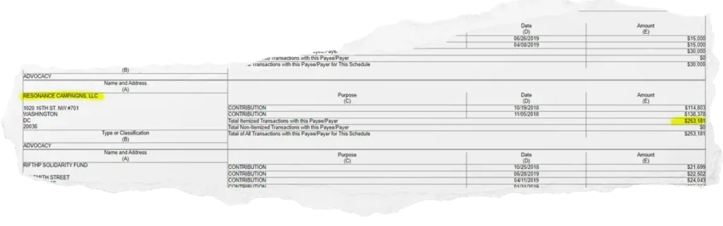 $253,181 in 2018 to Resonance Campaigns for “Advocacy”