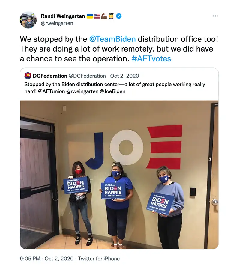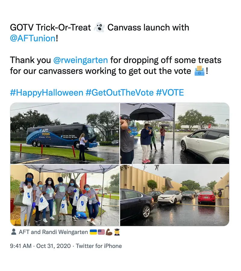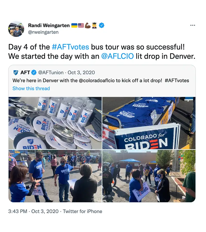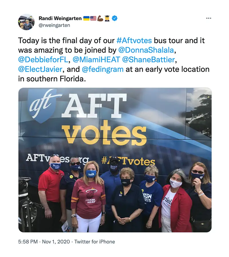 Source: “AFT Votes bus tour is ridin’ with Biden.”