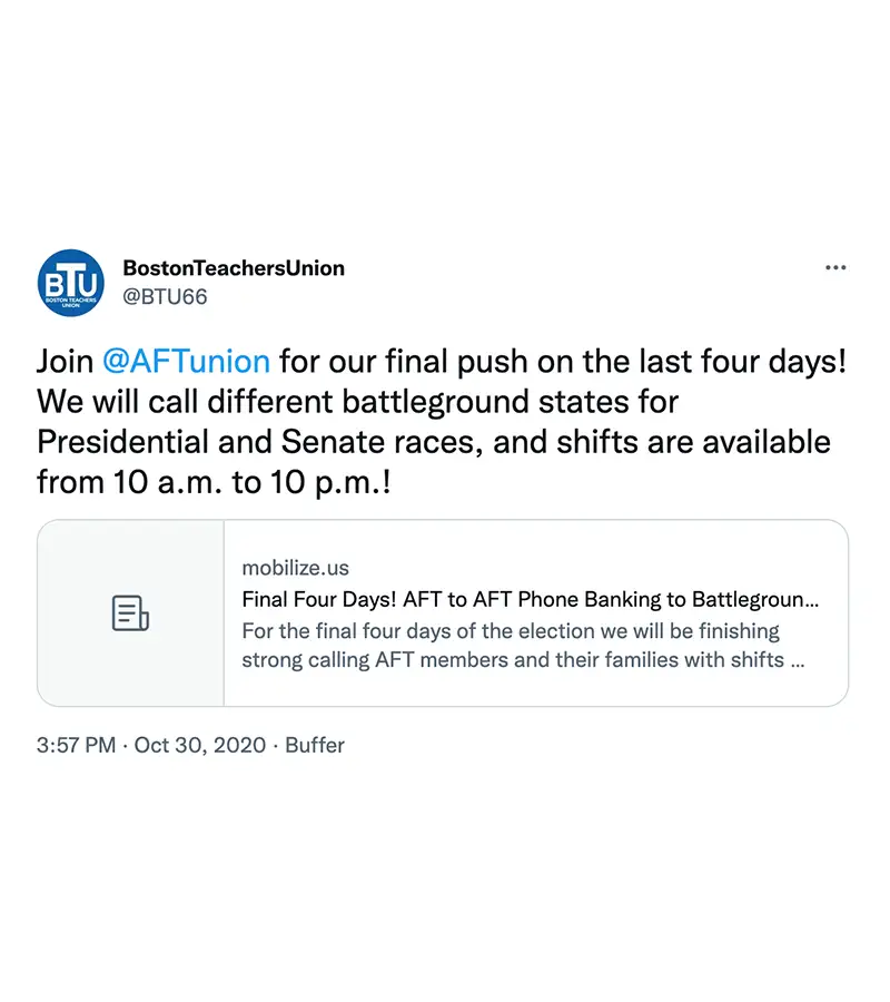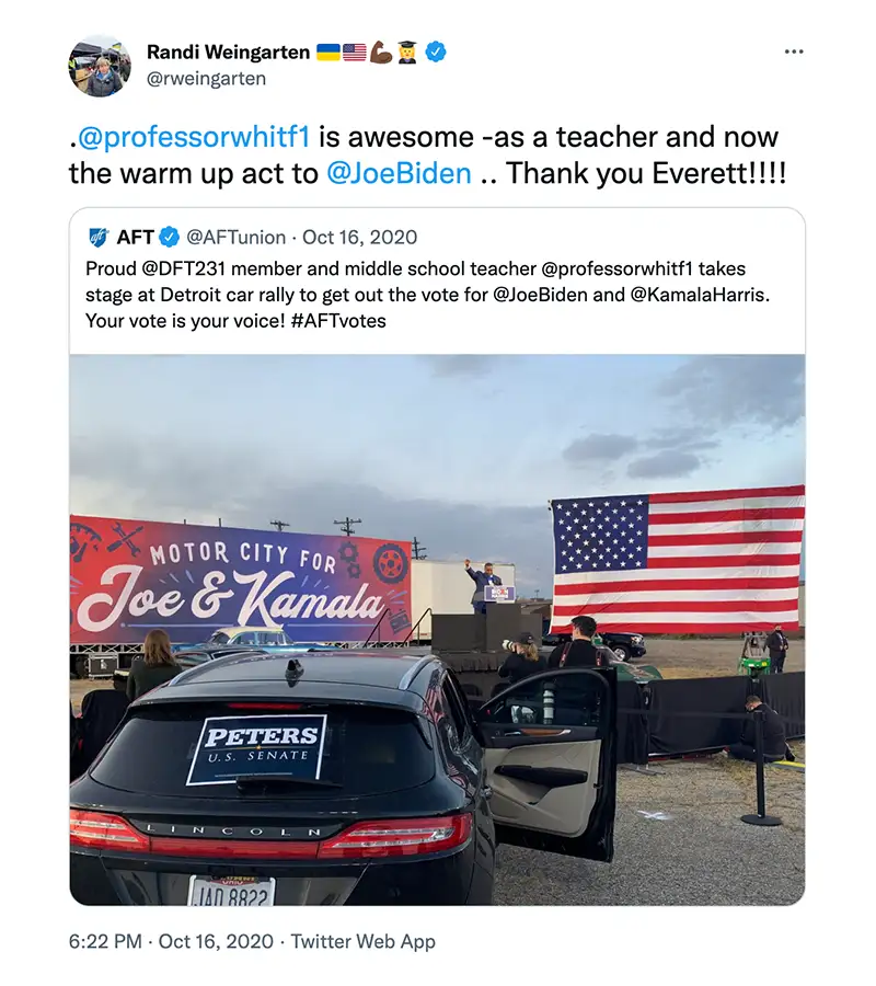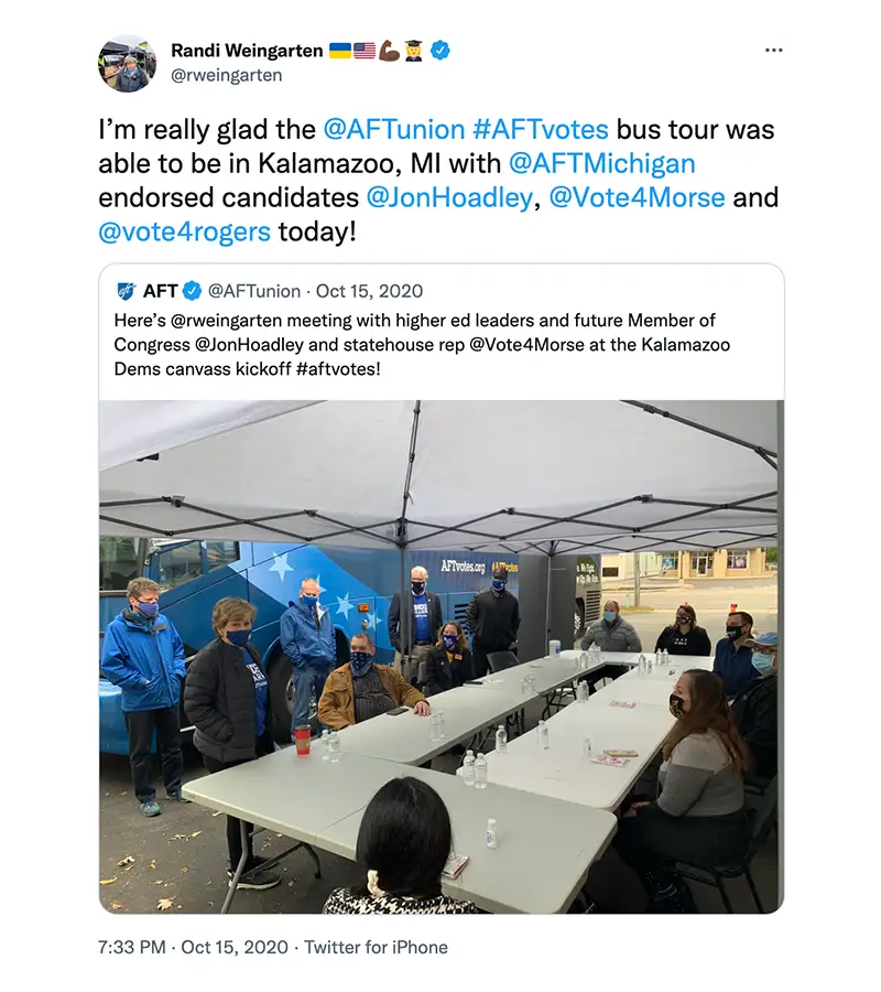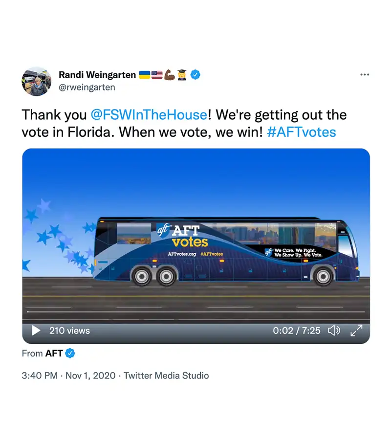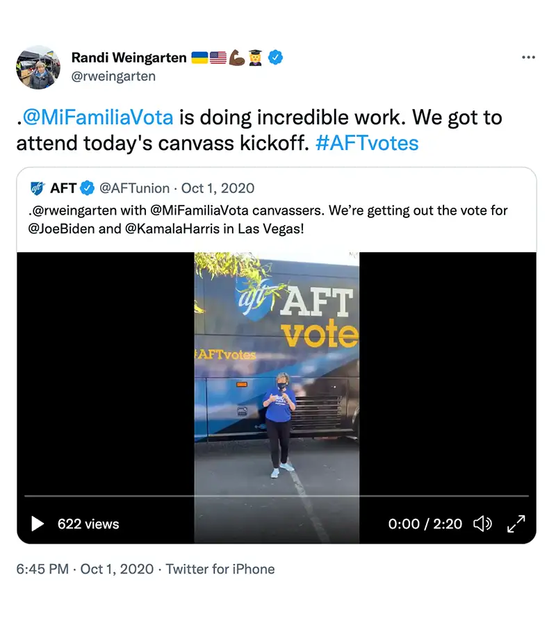 Source: “AFT Votes bus tour is ridin’ with Biden.”