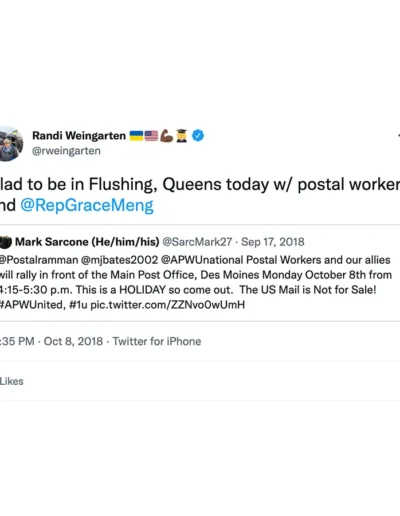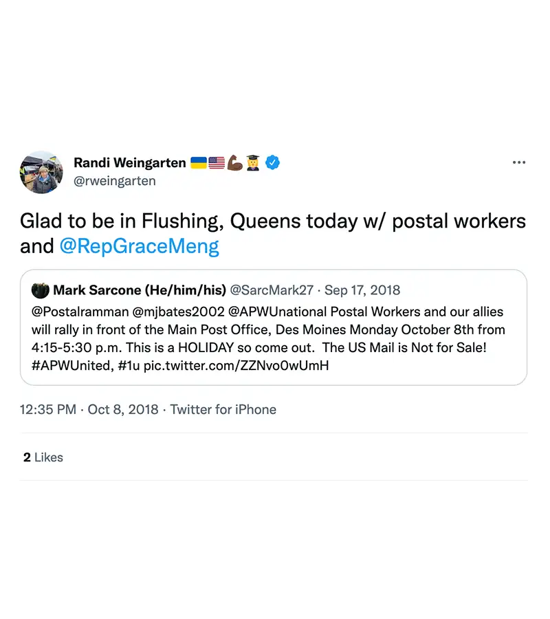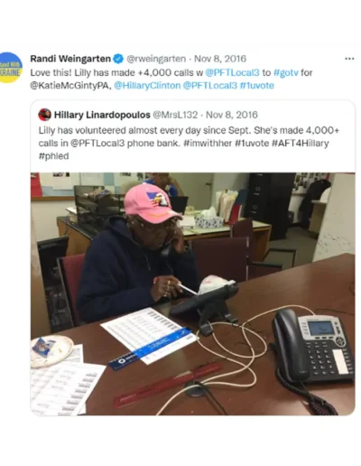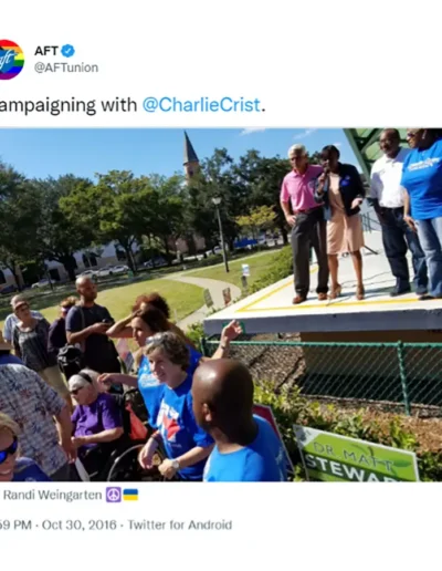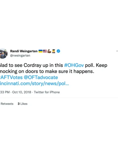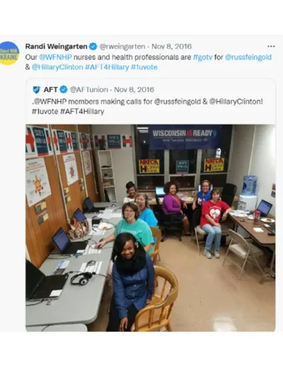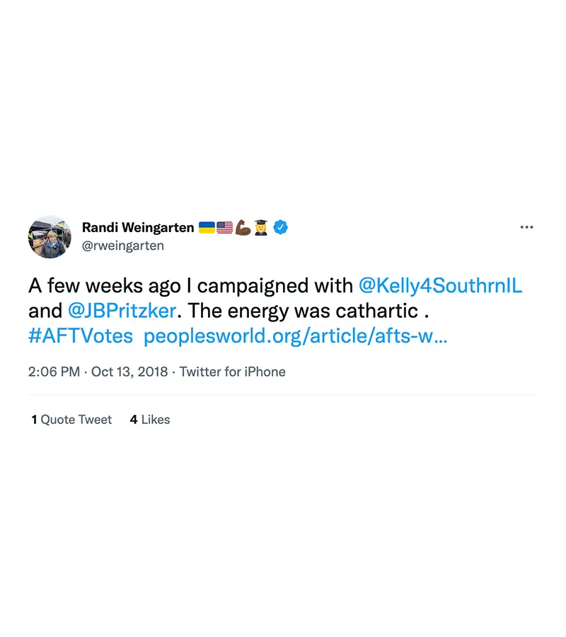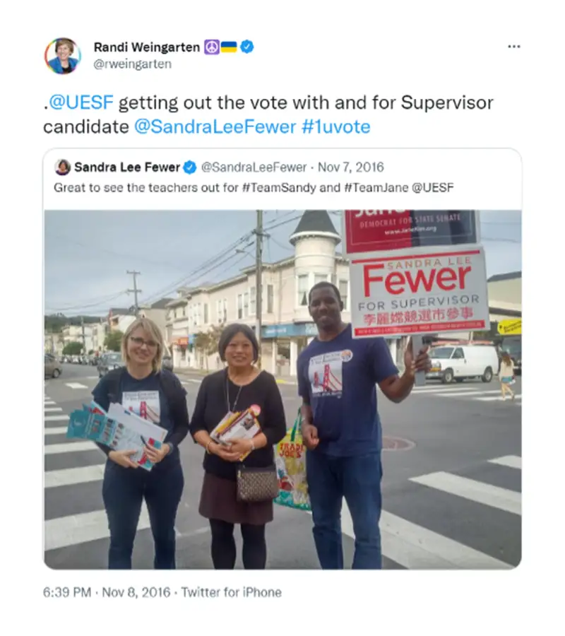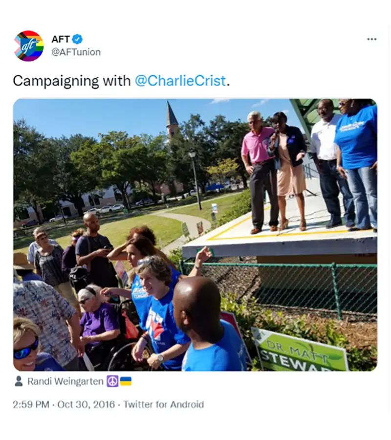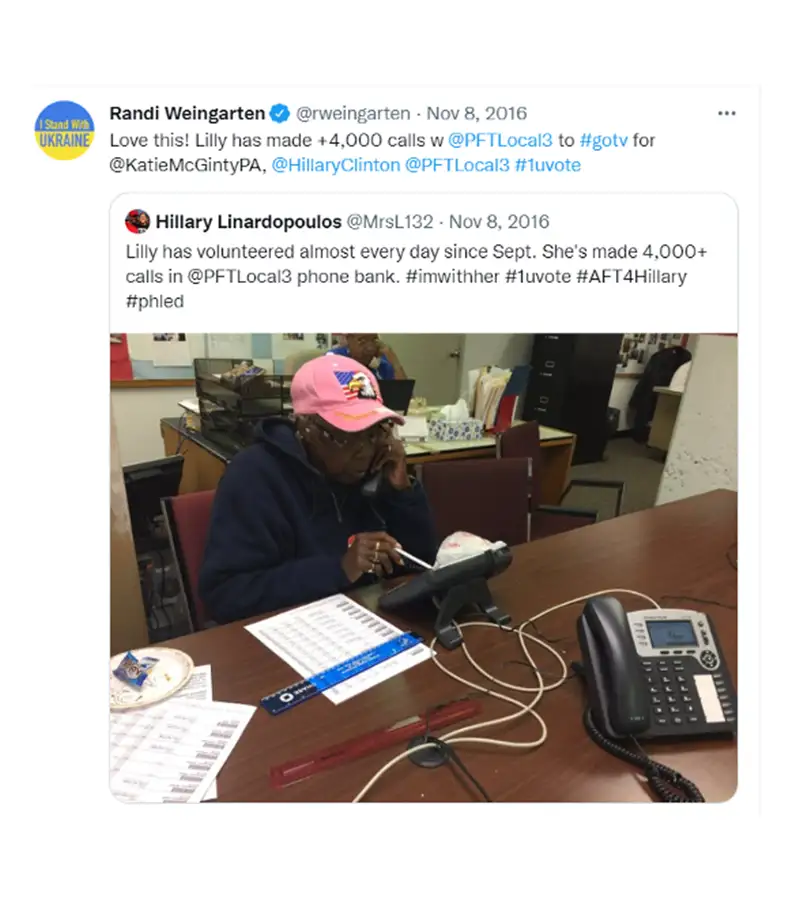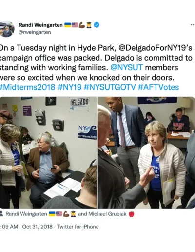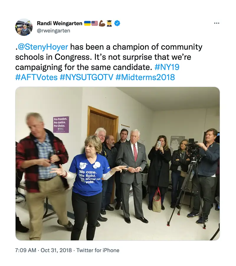 - During election seasons, Randi Weingarten sends as many as 80 tweets per day (and up to 550 per week) advocating for the election or defeat of candidates for public office.