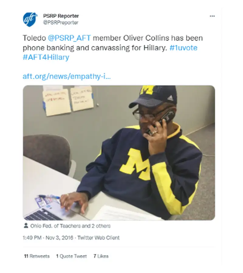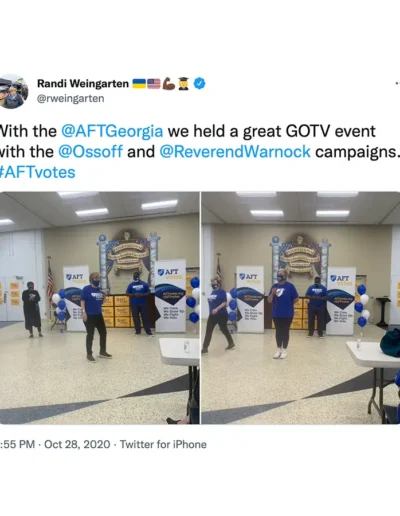 Source: “#AFTvotes Bus Stops in Atlanta, GA to GOTV” via AFT Facebook
