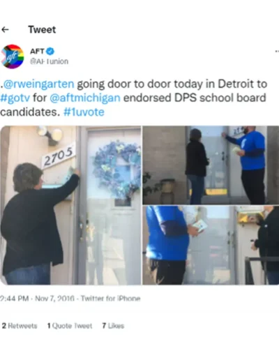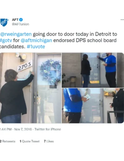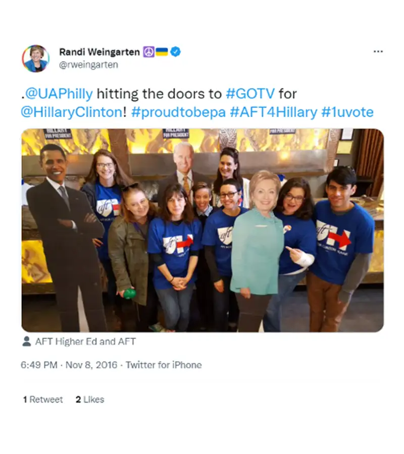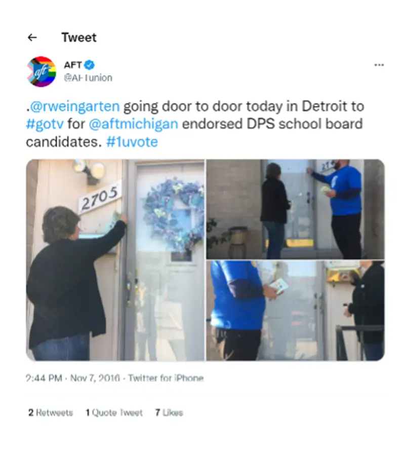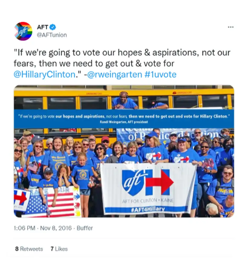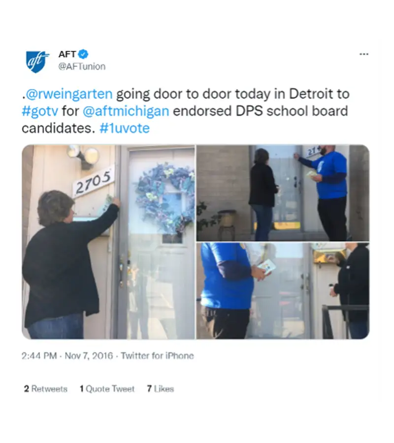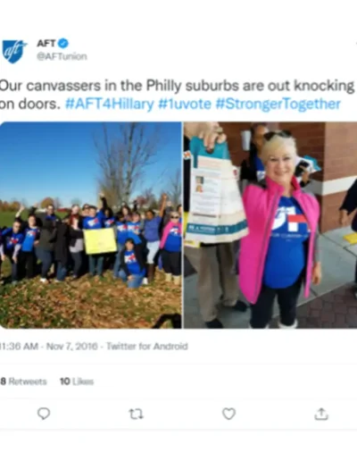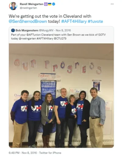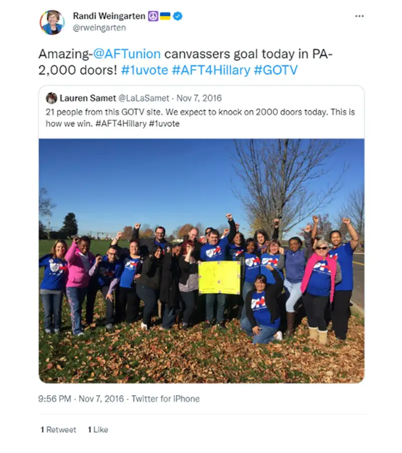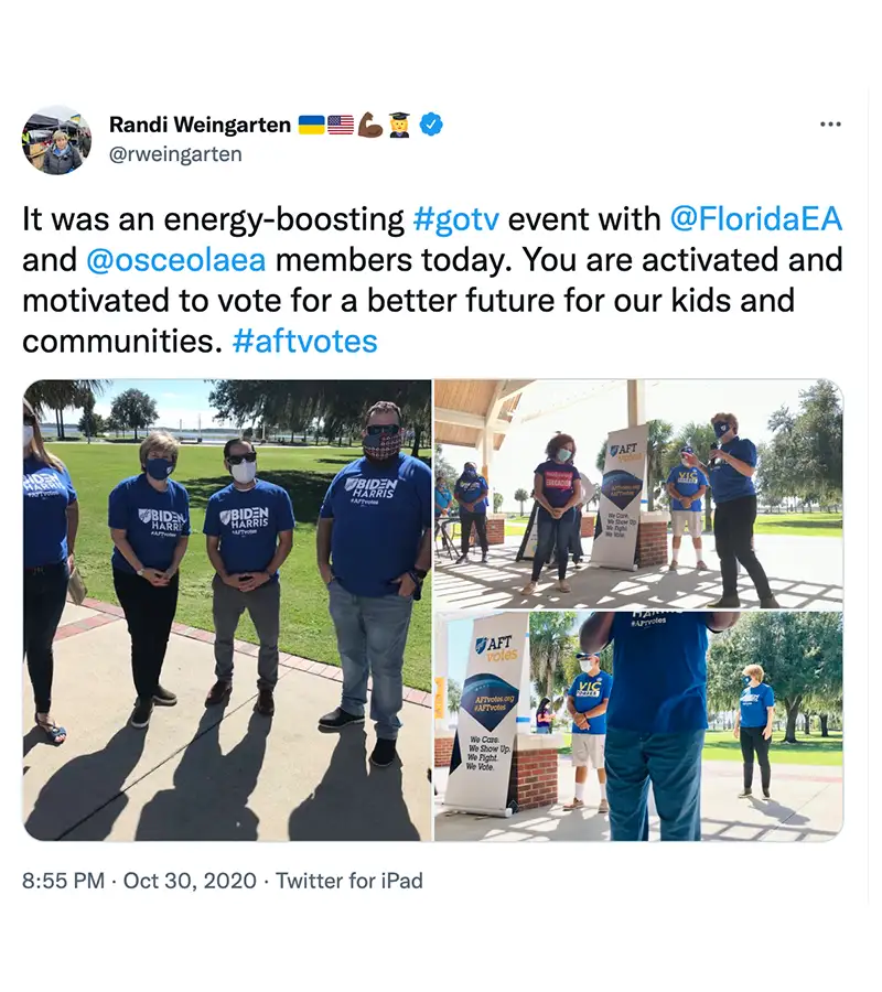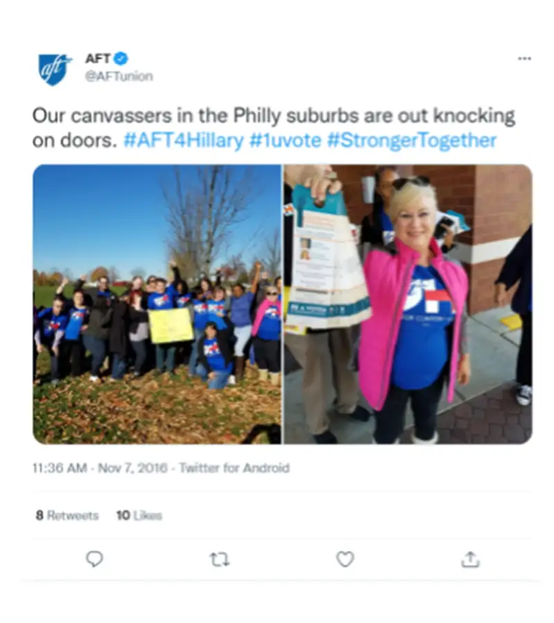 In the 2016, 2018, and 2020 election cycles, leaders of the American Federation of Teachers launched significant efforts to elect candidates for public office. They toured the country to give political speeches, attend campaign rallies with candidates, and knock on doors and call voters to “get out the vote.” The ability to engage in political speech and debate is a cherished and fundamental right in the United States. But you still have to play by the rules. And for reasons we explain in our Complaint, it appears that the AFT did not follow the rules- specifically, the rules regulating political activity by tax-exempt organizations in the Internal Revenue Code.